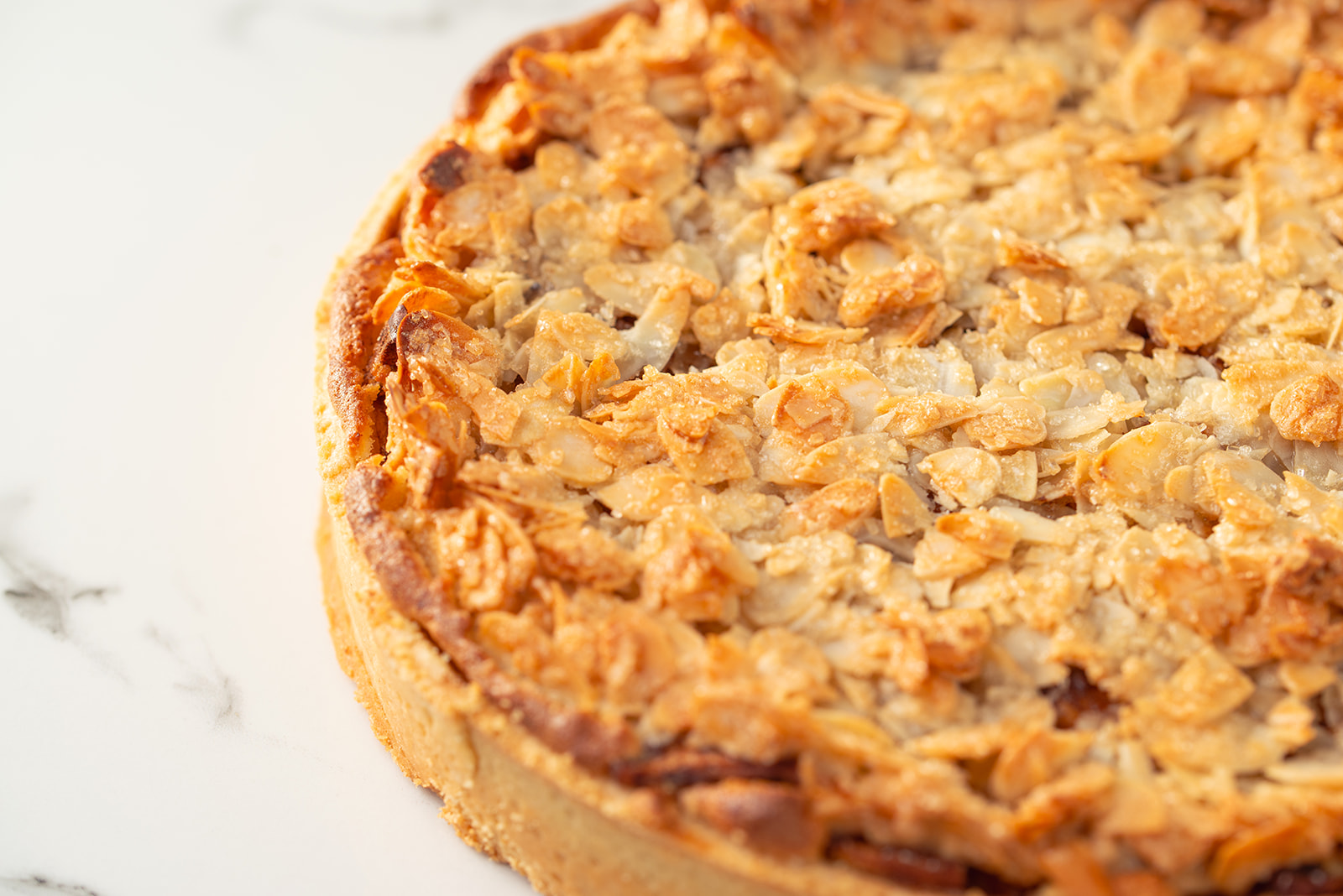 Bretonse Zandkoekkorst – hazelnotencrème – appels – geroosterde amandelen