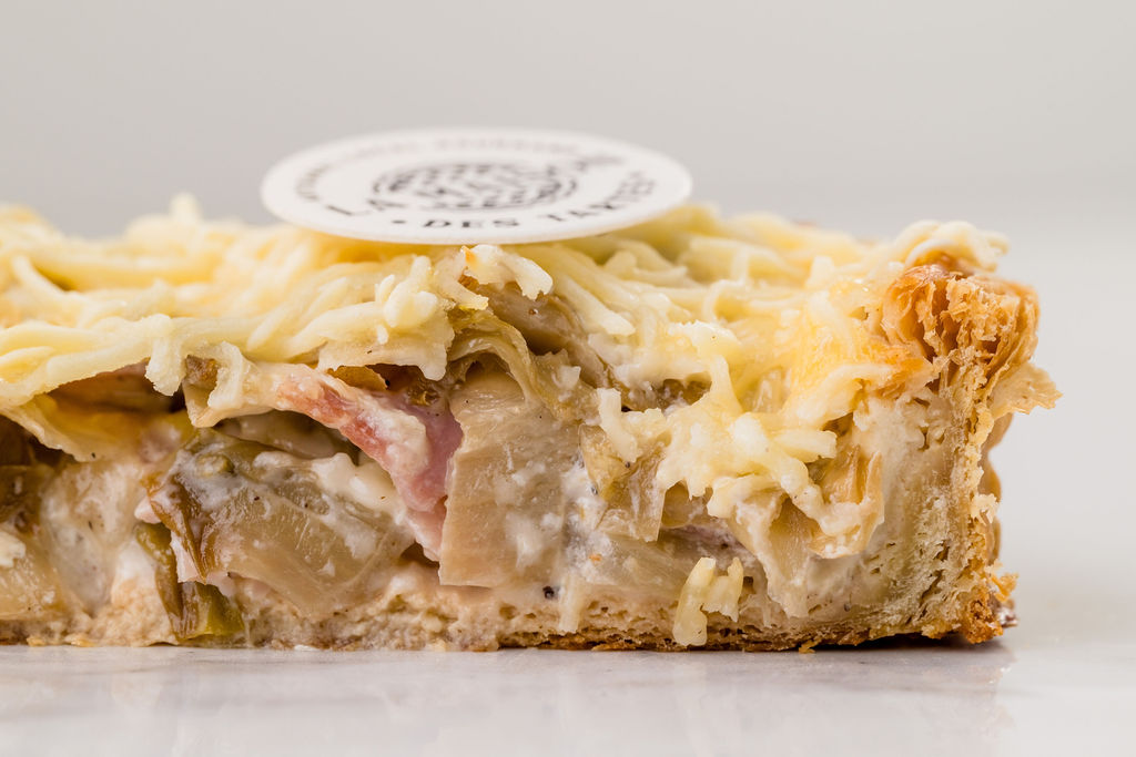 Pâte feuilletée – chicons – fromage rapé – jambon – composition (lait, oeufs, crème)