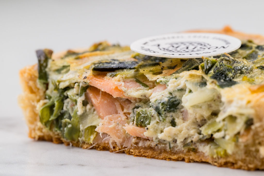 Puff pastry – leeks – smoked salmon – tarragon – ingredients (milk, eggs, cream, salt, pepper, nutmeg)
